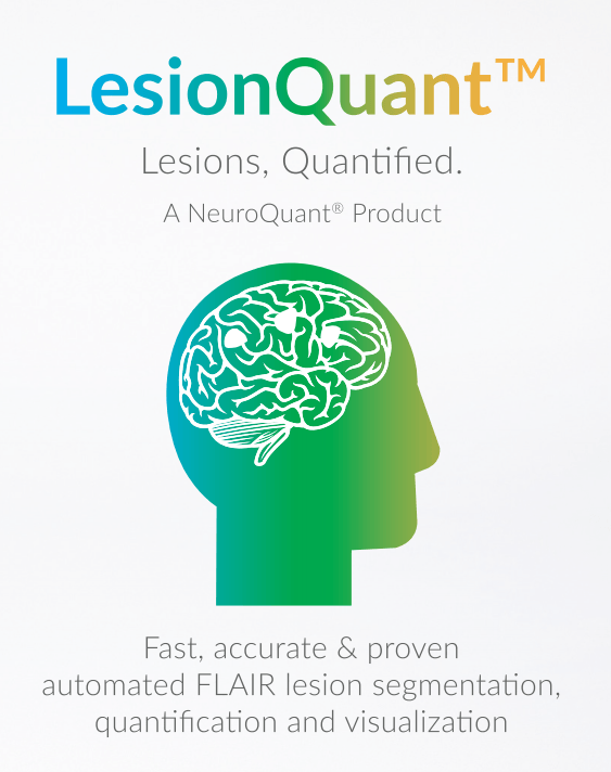 - LesionQuant features and benefits: Total number and volume of lesions Lesion burden calculation New and enlarging lesion identification and quantification Color-coded lesion visualization Color-coded lesion change visualization Anatomical lesion distribution Quantification of up to 8 relevant brain structures compared to our unique age- and gender-matched normative percentiles